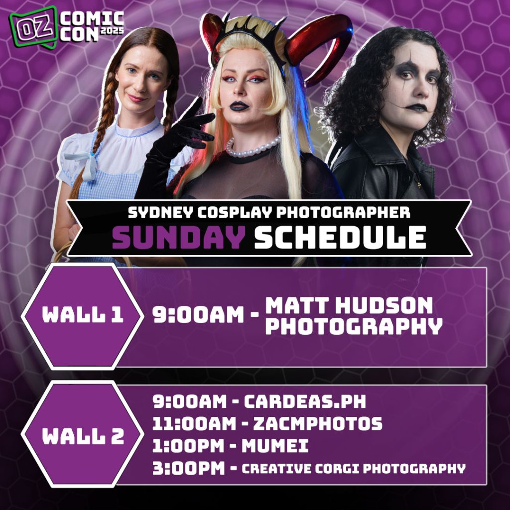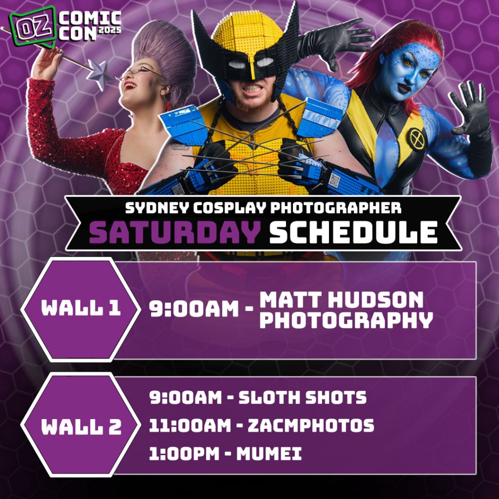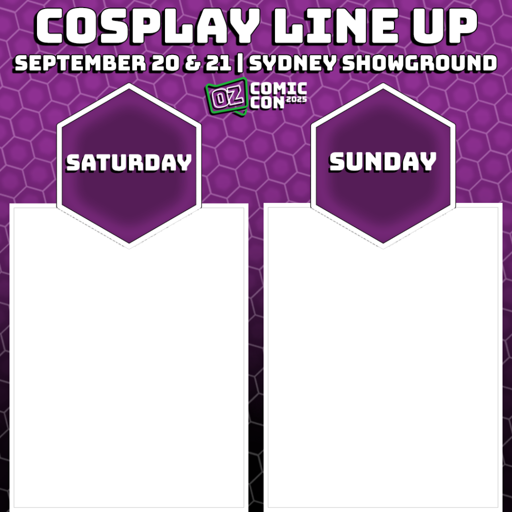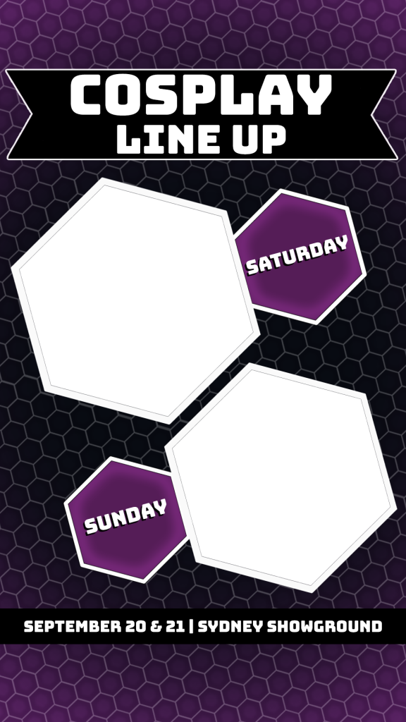 Download the frame for the Oz Comic-Con city you’re attending, insert your cosplay line up images and post away! Tag us for a chance at a reshare!